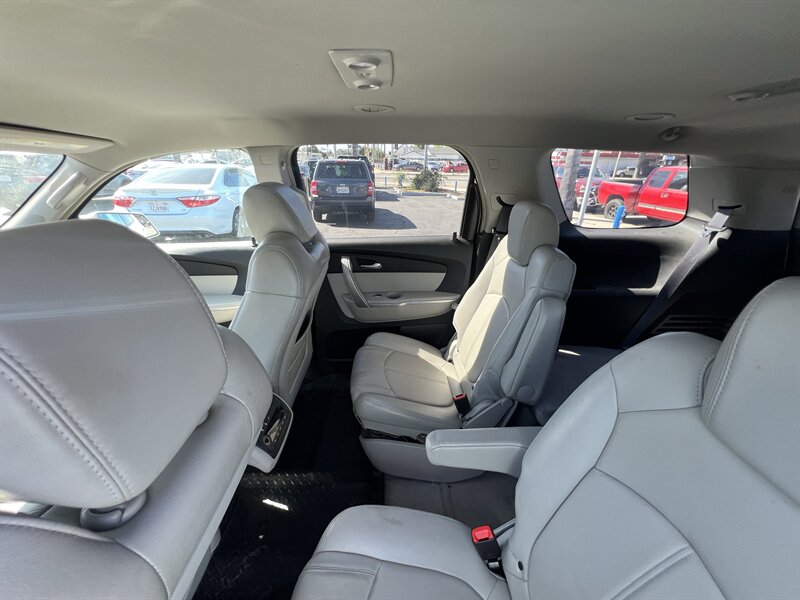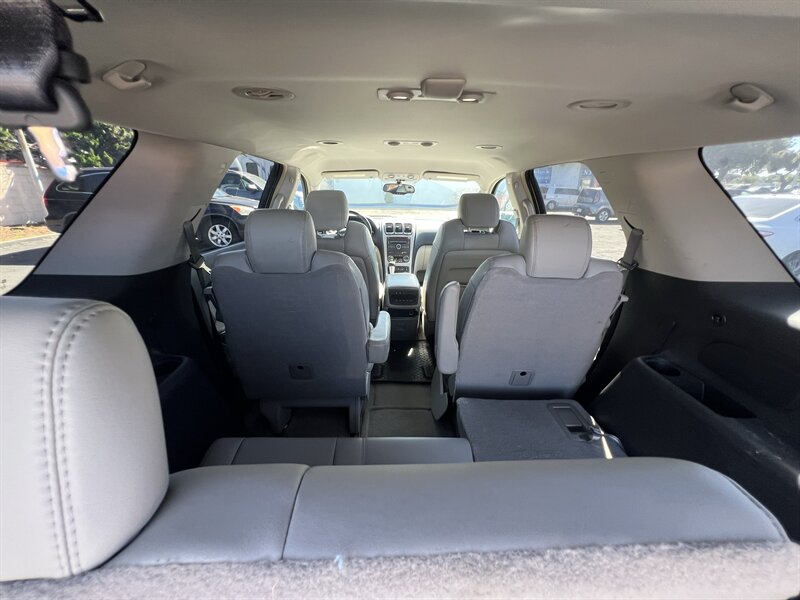 2008 GMC Acadia SLT-2 powered by a 3.6L V6 (275 hp, 251 lb-ft) with a 6-speed automatic. Factory equipment includes leather-appointed seating with heated front seats and power-adjustable driver and passenger seats, three-row seating for up to seven, tri-zone automatic climate control, AM/FM/CD audio with auxiliary input and steering-wheel controls, power windows/locks, remote keyless entry and OnStar capability, and standard safety systems such as ABS, StabiliTrak stability control, traction control, front-side and full-length curtain airbags and LATCH child-seat anchors. Exterior: White; Interior: Tan. Vehicle is in excellent overall condition with a clean CARFAX and one owner.