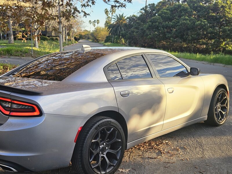 2017 Dodge Charger SXT in Silver with a Black interior, powered by the factory 3.6L V6 mated to an 8-speed automatic — excellent overall condition with a clean CARFAX. Factory-equipped features include power windows and door locks, remote keyless entry, cruise control, steering-wheel audio and phone controls, cloth seating with a 60/40 split-folding rear seat, and air conditioning. The vehicle also comes with Uconnect infotainment with Bluetooth and USB connectivity, aluminum wheels, and a full complement of safety equipment such as ABS, traction and stability control, and multiple airbags. Great looking car. Runs awesome. Just passed smog and safety inspection. Clean title.