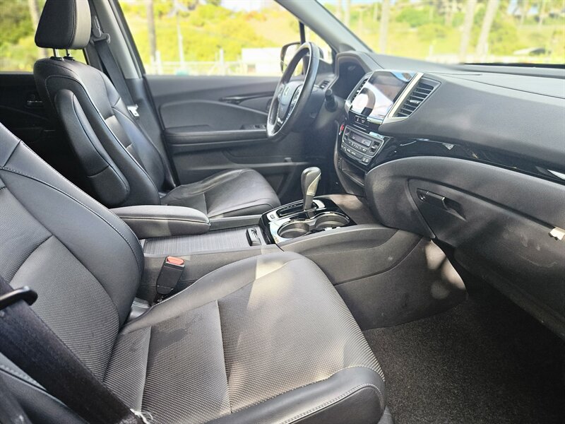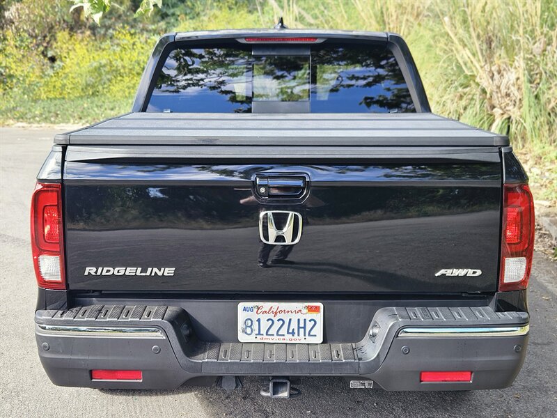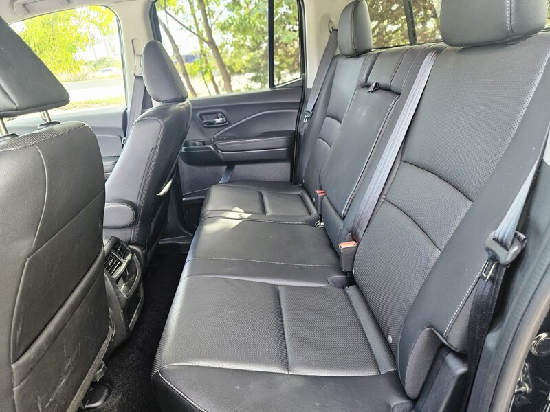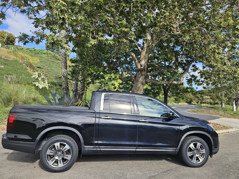 2017 Honda Ridgeline RTL-E con motor 3.5L i-VTEC V6. Las características de fábrica incluyen asientos delanteros tapizados en cuero y calefactables, asientos delanteros con ajuste eléctrico, climatizador automático de dos zonas, entrada sin llave con botón de arranque, sistema multimedia con Bluetooth y cámara de visión trasera, controles de audio en el volante, control de crucero, llantas de aleación, compartimento de almacenamiento integrado en la caja (in-bed trunk) y portón trasero de doble acción, además de los sistemas de seguridad estándar (ABS, control de estabilidad, múltiples airbags). Exterior: Negro. Interior: Negro. Excelente estado general, menos de 34,000 millas (promedio <4,000 millas/año), CARFAX limpio y un solo propietario.